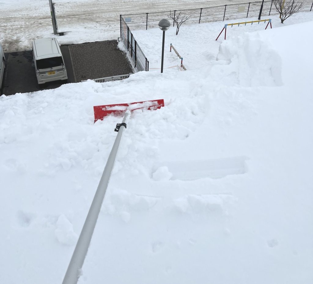 人や車への落雪リスクを考慮し、周囲の安全を確保したうえで丁寧に雪を下ろします。